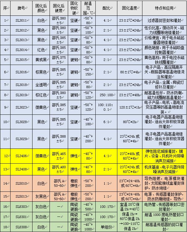 種類繁多的灌封膠又如何選擇呢?作為灌封膠的使用單位需要查看哪些性能數(shù)據(jù)才能對選擇灌封膠有幫助呢?下表是世林膠業(yè)在灌封膠方面的產(chǎn)品,可供您選擇參考,這里列舉的產(chǎn)品種類很多,功能也各不相同,如果您還有其他的特殊要求也可以和世林的工廠技術(shù)人員進行交流,只有清楚知道您的實際用膠需求,我們才能給您提供全套的灌封用膠的解決方案。